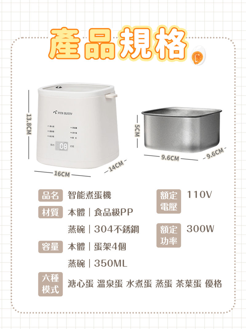 25分鐘前Pink Bunny智能煮蛋機智能控溫烹煮,營養美味輕鬆上桌 - Pink Bunny智能煮蛋機1入組 NT$1090
